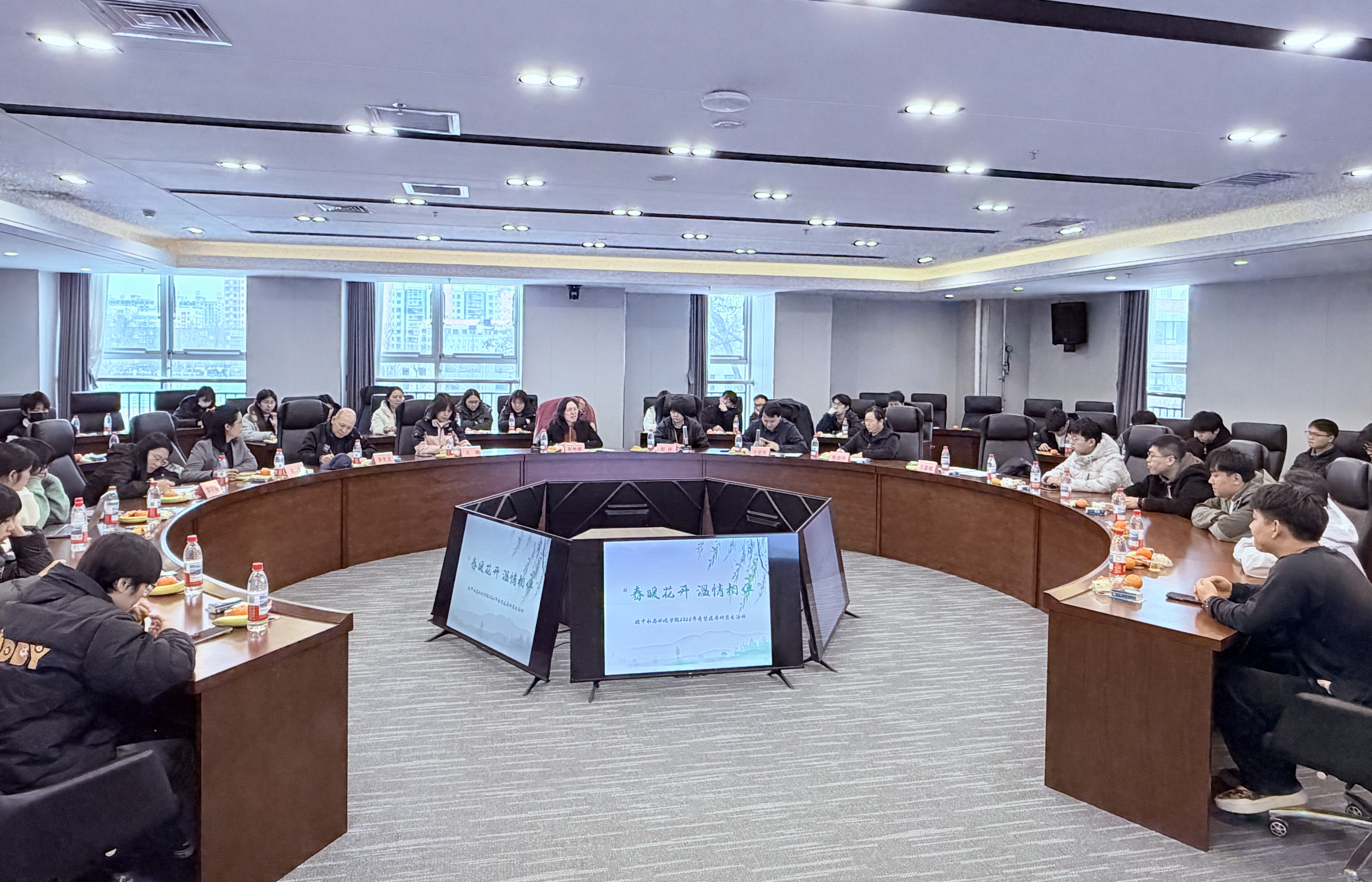 随后,学院一行与全体在唐研究生召开座谈会。学院领导结合2026年政府工作报告中“加快推动绿色全面转型”的目标,寄语同学们牢牢把握发展机遇,将个人学术研究与国家战略需求紧密结合,在科研中勇于挑战、力争突破,同时始终将安全放在首位。同学们对学院的关心表示感谢,并表示将珍惜科研机会,潜心钻研、刻苦奋进。会上,学院为在唐学生发放慰问礼物,传递温暖与关怀。